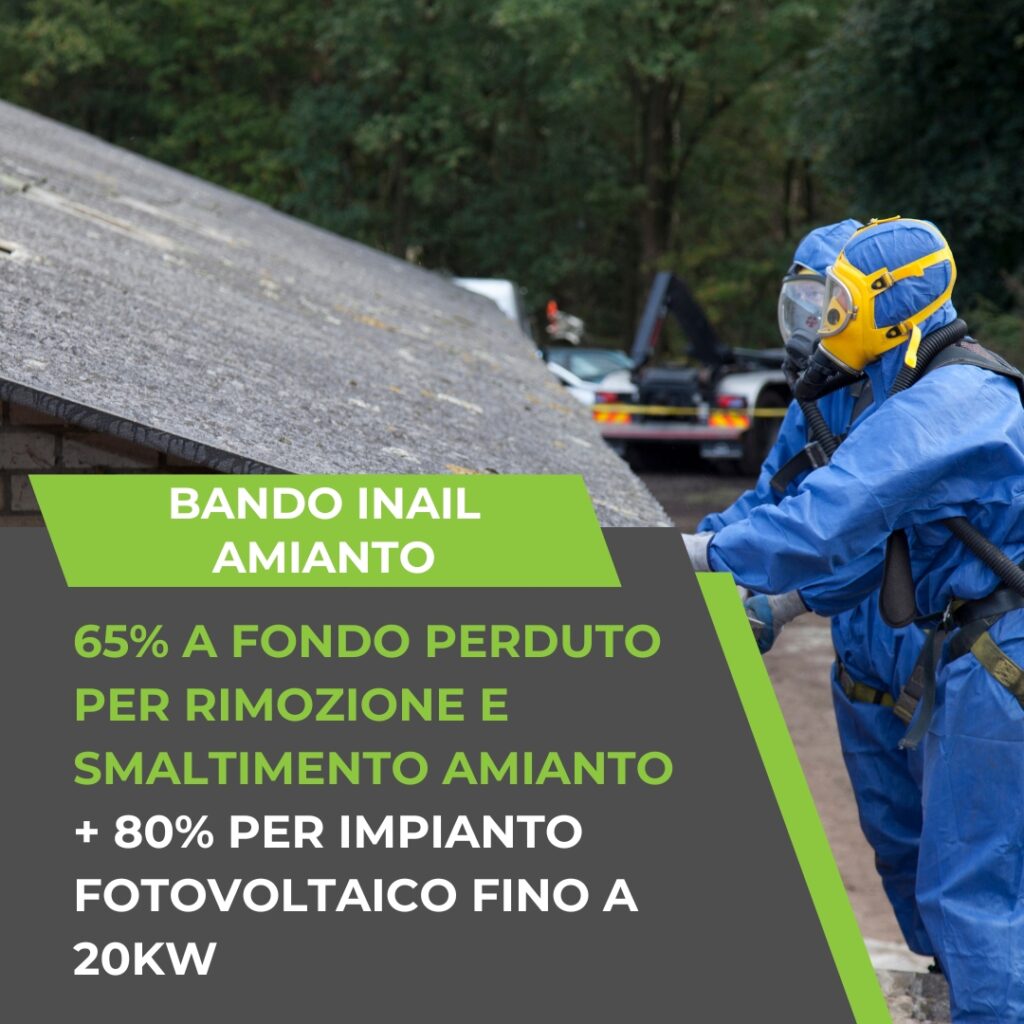 | Asse 3 | Progetti di bonifica da materiali contenenti amianto. | 65% | Fino a un massimo di 130.000 € |